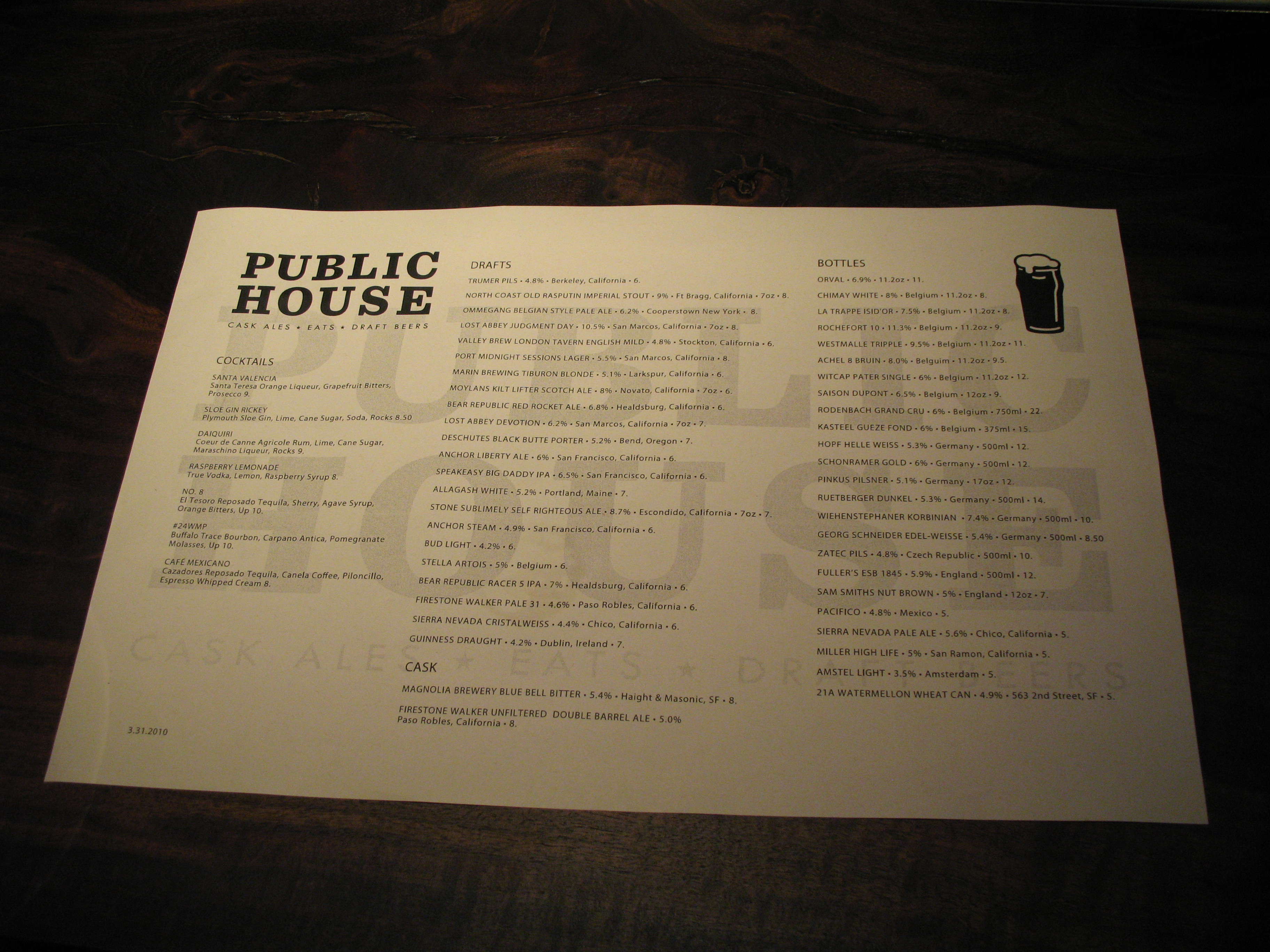 Click on the photo of the Public House menu for a mouth-watering close-up of the beer list.